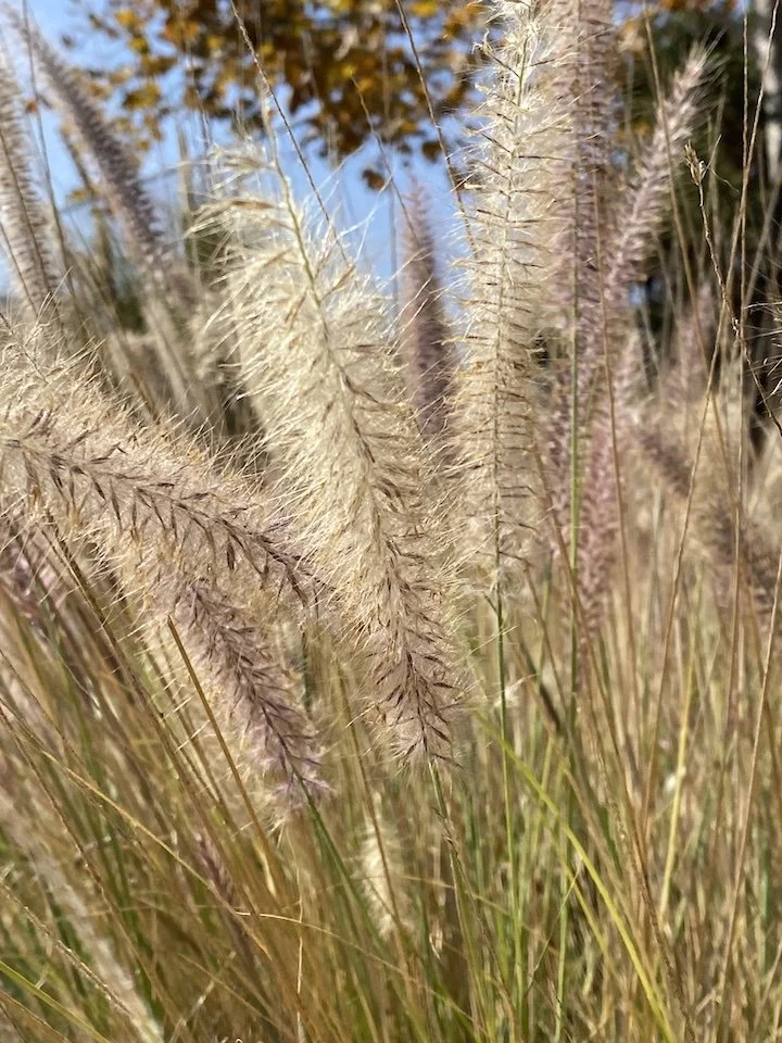 On the left is a Castor seed pod from a shrub native to North Africa, introduced to the Americas during the Trans-Atlantic slave trade. Castor oil is commonly used as a laxative and as a general tonic for treating illnesses, and can be applied externally to ease inflammation. Caution, the seeds contain ricin, a highly toxic substance that is lethal to humans and animals. On the right is Fountain Grass, also introduced to the bioregion, originally from Northern Africa or Australia. Both are hardy perennials and find niches for survival.